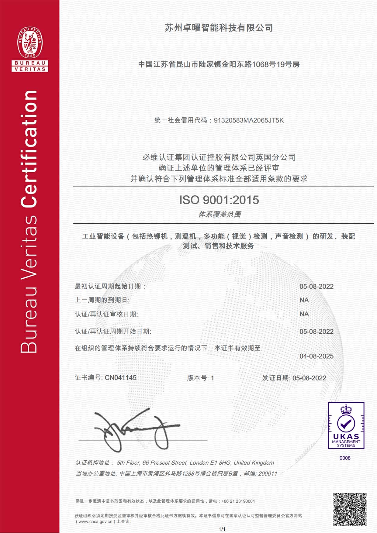 BV認(rèn)證 ISO9001:2015
