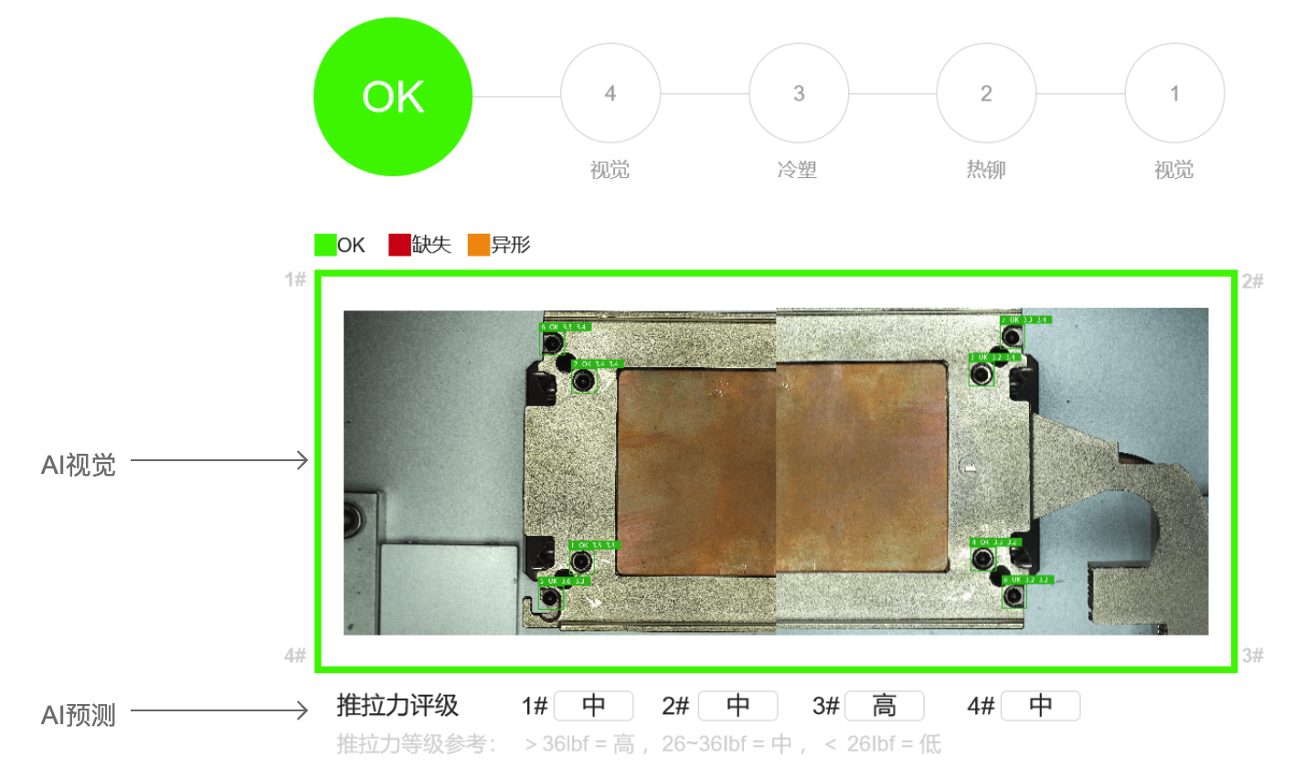 卓曜設備采用人工智能技術,設計“AI視覺+AI預測”雙重利器,由其替代人工質(zhì)檢,智能把關工藝品質(zhì)