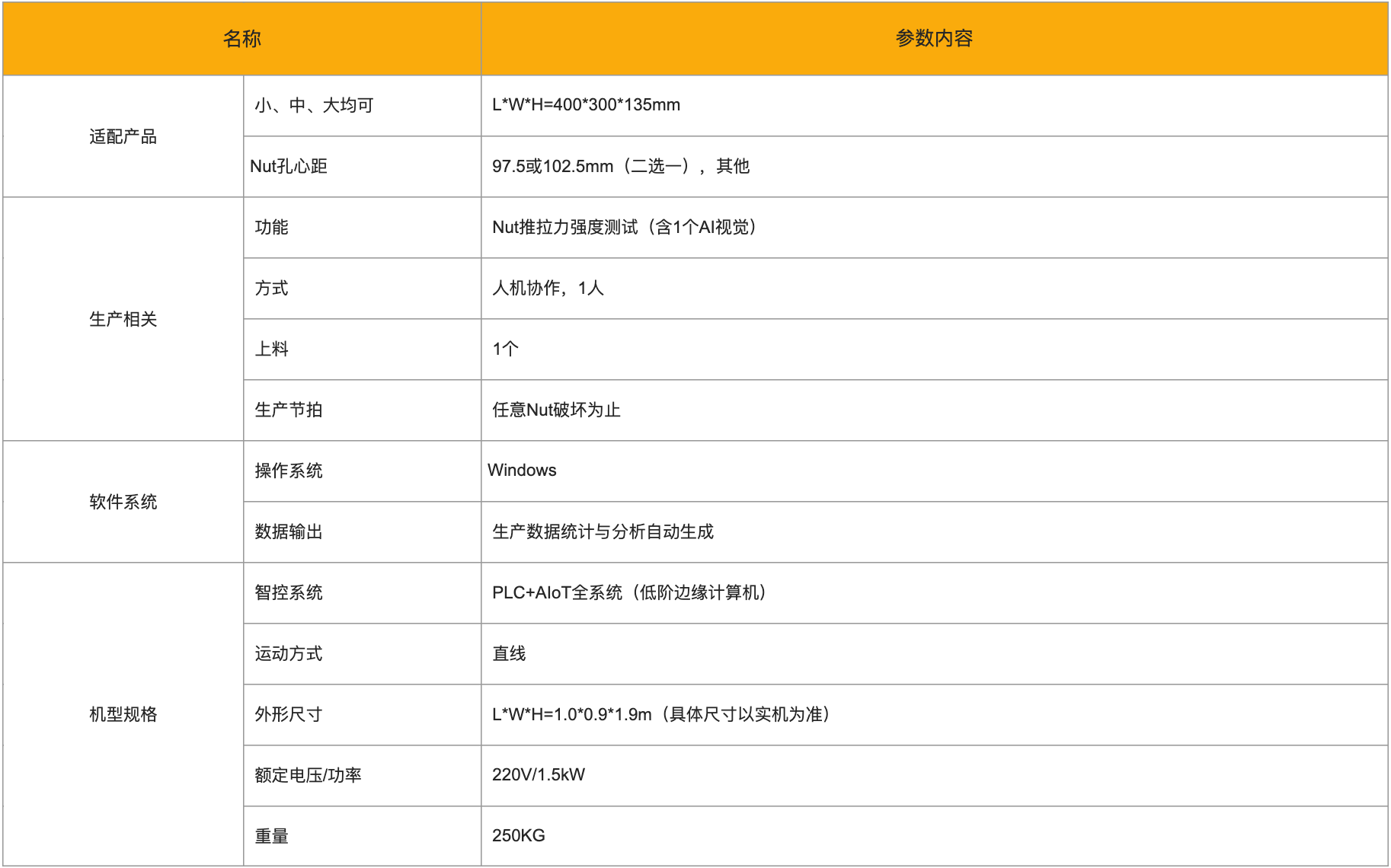 P | 強度檢測 | 小/中/大 | 任意Nut破壞為止 | 1*0.9*1.9 | 250 | 220/1.5 | 關(guān)聯(lián)AI預(yù)測 | 點擊詳情> |