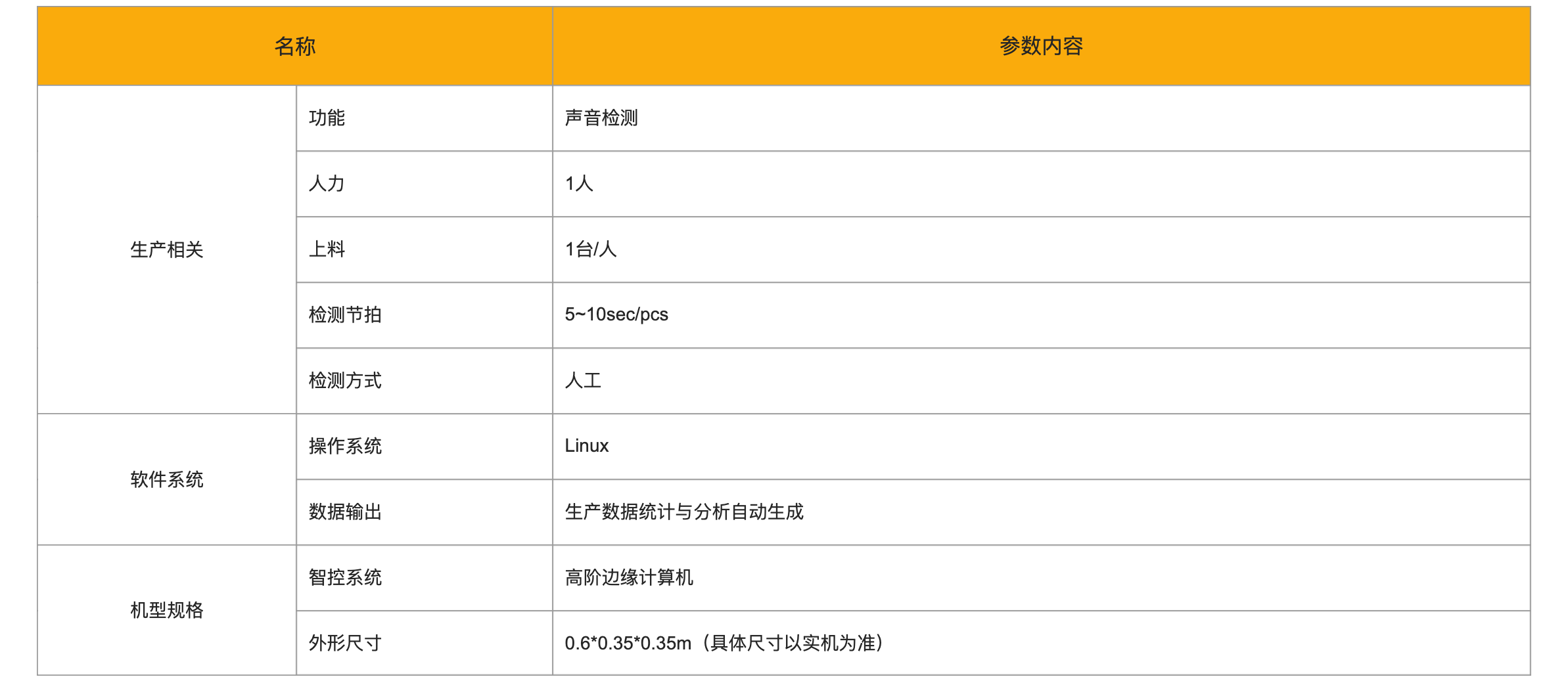 N2 | 聲音+其他功能組合 | 流水線配套檢測 | 依需設計 | 0.8*1.7*1.0 | 自動抓取 配套流水線組合示意請查看詳情 |